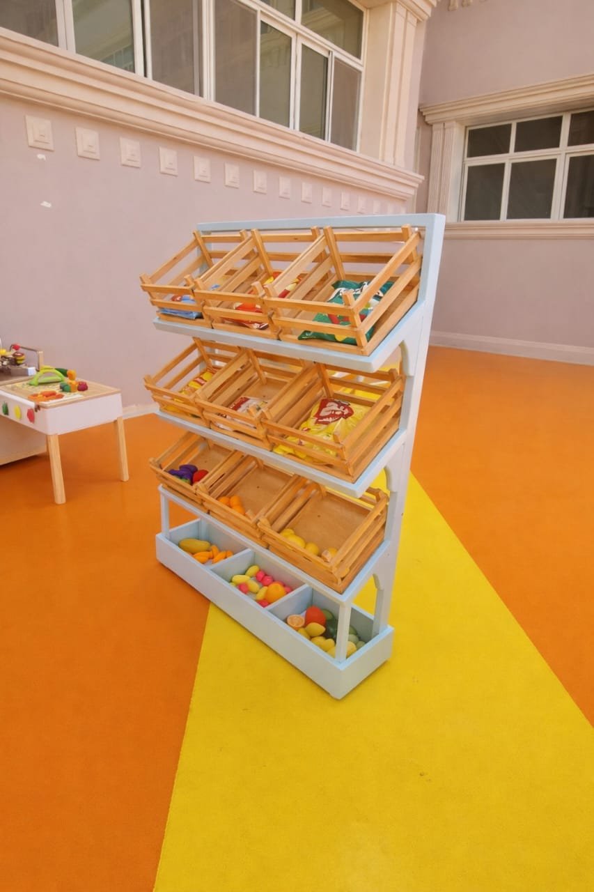 مدة التسليم: من 10 إلى 15 يومًاالوصف: رف عرض خشبي متعدد الطوابق مصمم لمتاجر وأسواق الأطفال التخيليّة، يجمع بين المتانة وسهولة الاستخدام للأطفال.