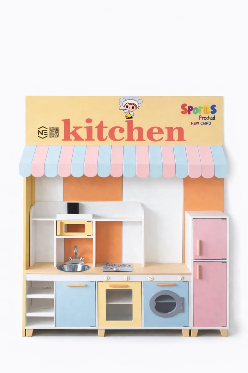 مجهزة بالكامل بأدوات مطبخ لعب مثل الموقد، الفرن، والثلاجة