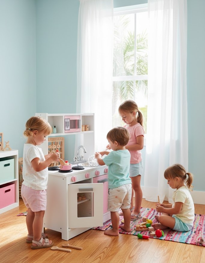 Dimensions: 30*90*60Material: mdfDelivery Time: Approximately 10 to 15 daysThis kitchen set features a vibrant, child-friendly design with ample space for pretend cooking, storage, and interactive play. Its sturdy construction ensures durability, making it a delightful addition to any playroom