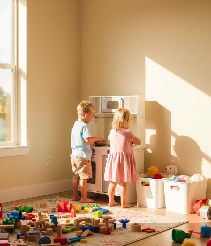 A stylish pretend play kitchen designed to spark creativity and imaginative play. With elegant finishes and a realistic layout, it’s a perfect addition to any child?s play space.