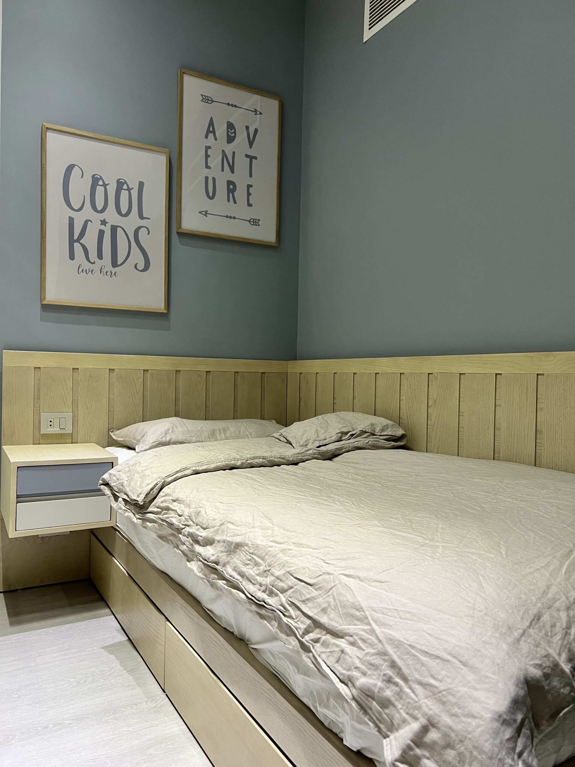 Outer size:160 cm with hanging night stand