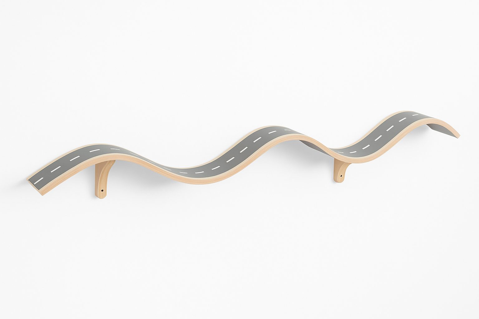 •Size: 300 cm width × 15 cm depth•Material: MDF•Color: Grey road surface with natural wood edges•Lead Time: 10–15 days• Modern wavy wall-mounted car track design• Perfect for kids’ playrooms and imaginative play spaces• Smooth curved structure for a fun and dynamic visual effect• Space-saving wall installation• Decorative and functional at the same time• Realistic road print with a clean, minimal style• Durable construction with smooth finished edges• Ideal for toy car play and display• Adds a playful modern touch to any room décor